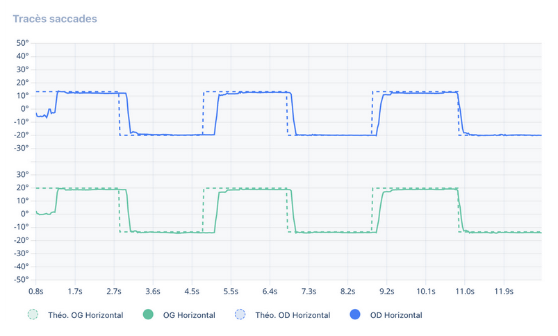 Tu gagnes en fluidité dans la lecture de tes tracés de saccades, de poursuite et de lecture.